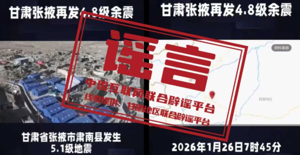 ??辟謠:“甘肅省張掖市肅南縣發(fā)生5.1級地震”等相關信息不實