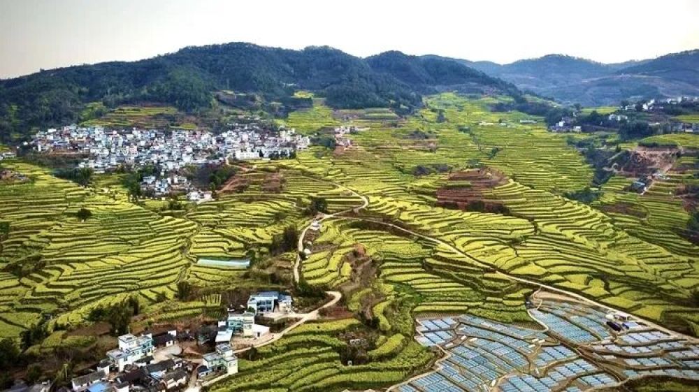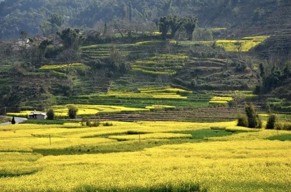 梯田間,花海綿延層疊