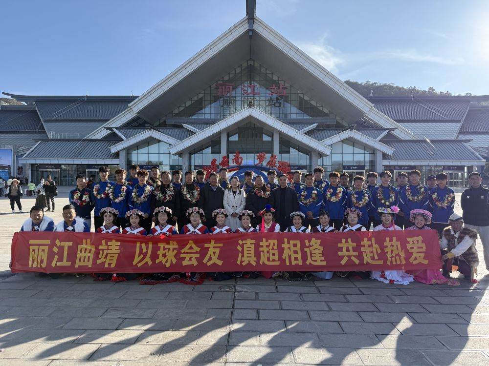 2月1日下午,滇超聯(lián)賽曲靖隊隊員乘坐動車順利抵達麗江。麗江市副市長魏妮婭帶隊到車站迎接。出站口處,作為東道主的麗江特意為曲靖隊安排了熱烈的歡迎儀式,當(dāng)?shù)厝罕娤蚯騿T們送上鮮花、東巴字畫及文創(chuàng)禮品。球員們還受邀參與打跳,親身體驗了麗江獨特的民族風(fēng)情。