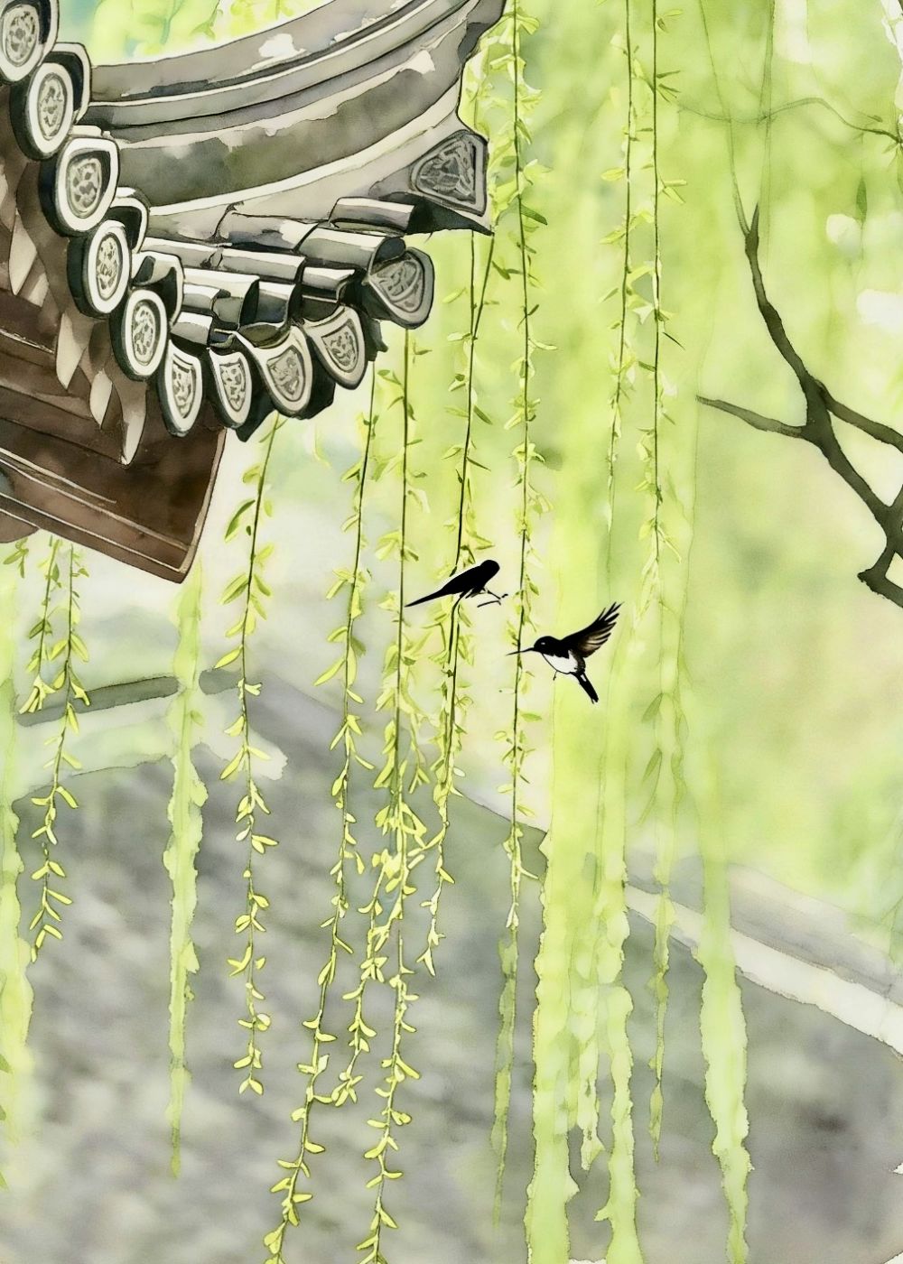 東風吹綠柳。(麗江融媒記者 和慧芳 插畫制作)