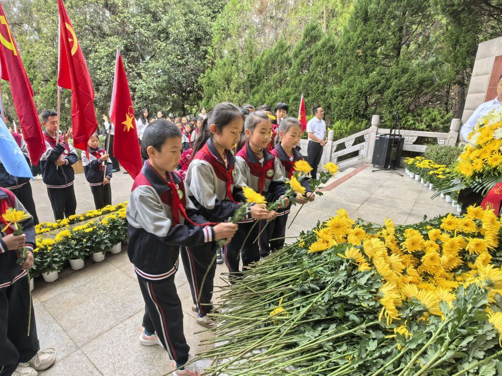 隨后,師生們手持菊花,依次走到墓前敬獻鮮花,低頭鞠躬致意。潔白的菊花寄托著無盡追思,莊重的儀式浸潤著心靈。大家在靜默中重溫先輩事跡,上了一堂深刻的愛國主義教育和民族團結(jié)教育課。