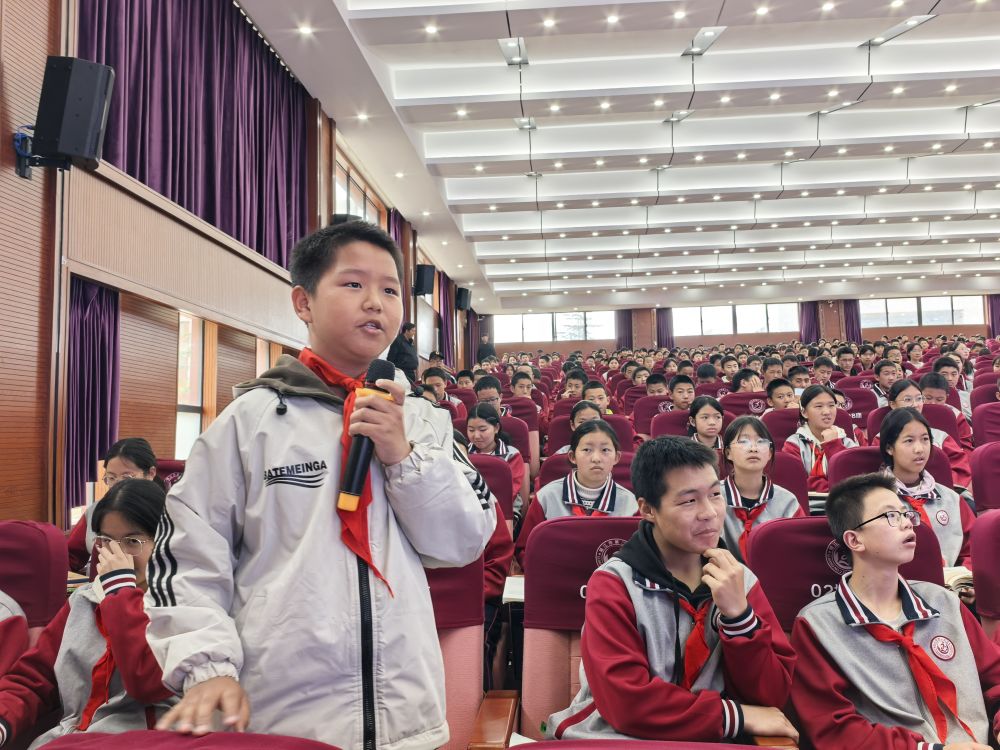 麗江市第二中學(xué)的學(xué)生在講座現(xiàn)場(chǎng)與陳敏律師互動(dòng)。(麗江融媒記者 木雯嬌 攝)